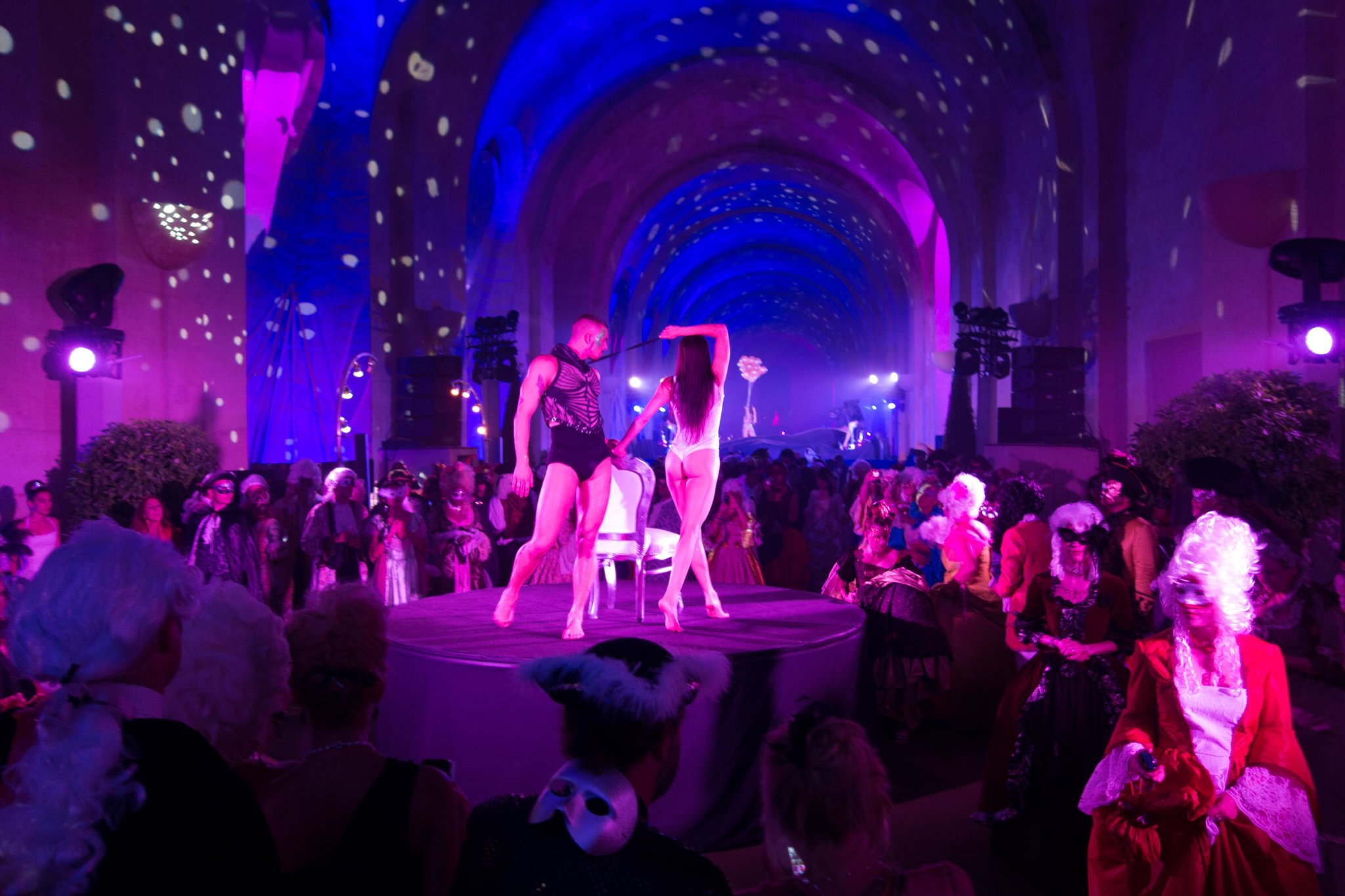 Once a year, a Grand Masked Ball is held at the Palace Versailles. It just happened to be the weekend we were in Paris. The ball starts at 11pm and goes until 6am. Performers dressed in amazing costumes (and sometimes not much at all) entertained us throughout the evening. The hall was transformed by lights, DJs, and the incredible outfits dawned by everyone in attendance.