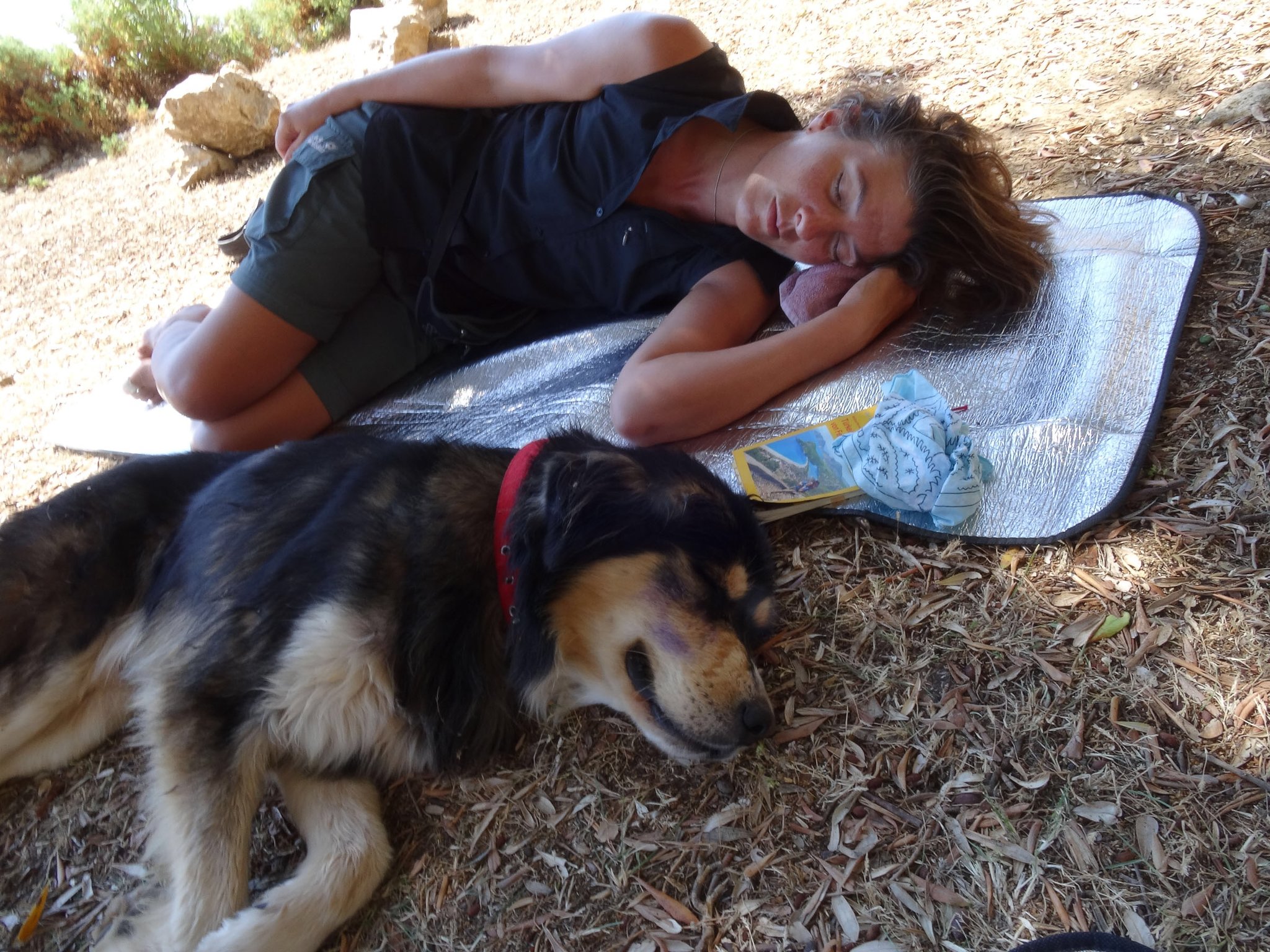On the second morning of our hike, we awoke to a dog hanging out in our camp. He insisted on joining us on the trail. An Australian Shepard, he had one blue eye and one brown eye. He had a collar, but no owner was around. We tried to dissuade him, but he was set on following us for the 17km we walked that day. He even joined us for a nap we took in the mid afternoon. I misheard Tina say "olive" in her German accent, so Olaf was his name. He had a bad habit of chasing goats, and eventually we parted company when we got to the village at the end of the day.