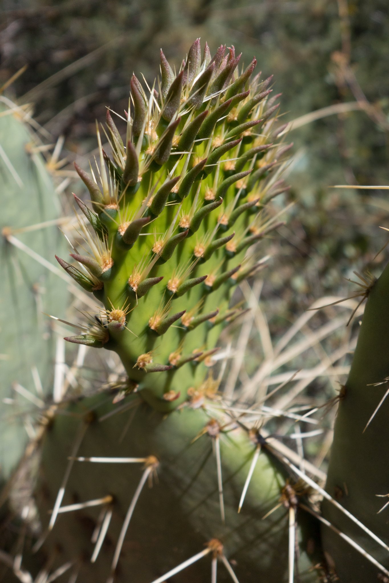 As I was leaving Joshua Tree the next morning, the horizon was obfuscated by a massive wall of dust and sand. Called a haboob, these dust storms can achieve massive proportions, stretching for miles. Luckily, this one was relatively small and cleared after half an hour. What was revealed was a desert in bloom. A variety of cacti were flowering, and I stopped to get a closer look (but not too close) at the cholla cactus, also referred to as the jumping cactus.